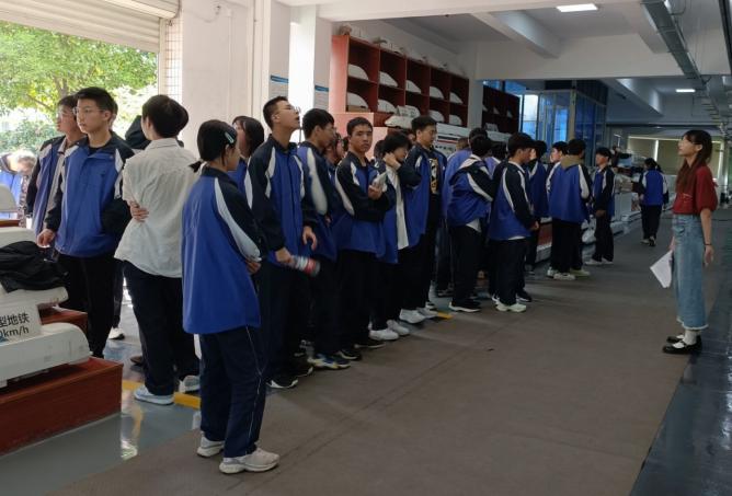 轨道交通科普基地进行参观实践。同学们在基地志愿者们的带领下,分别参观了动模型实验室和实车碰撞实验室。