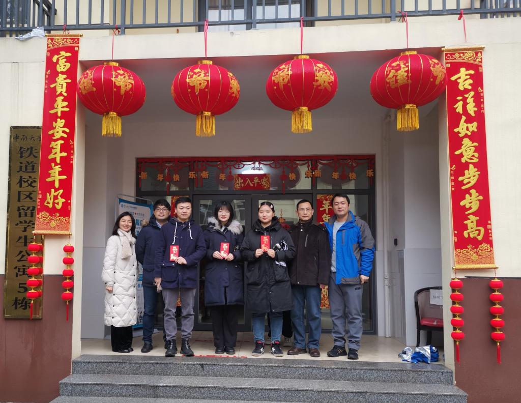 2022年1月25日上午,受三级片 党委委托,三级片 党委副书记宋晓东、关工委常务副主任符卓、研究生导师周伟及辅导员张佳琪一行来到留校学生集中住宿区铁道校区留学生公寓5栋,看望慰问受疫情影响寒假留校的同学。 宋...