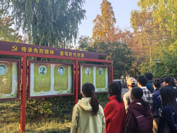 活动伊始,全体党员怀着崇敬的心情行走在花溪公园的红色文化区域观看公园内的英烈事迹展板、纪念雕塑等景观。这些景观生动再现了革命先辈们为国家独立、民族解放而英勇奋斗的峥嵘岁月,让同志们对王玉如、冯仲云等重要革命历史人物有了更深入的了解。通过学习,同志们深切缅怀革命先烈为党和人民事业作出的伟大牺牲与卓越贡献,真切感受革命先辈们坚定的理想信念、无畏的斗争精神和深厚的为民情怀。