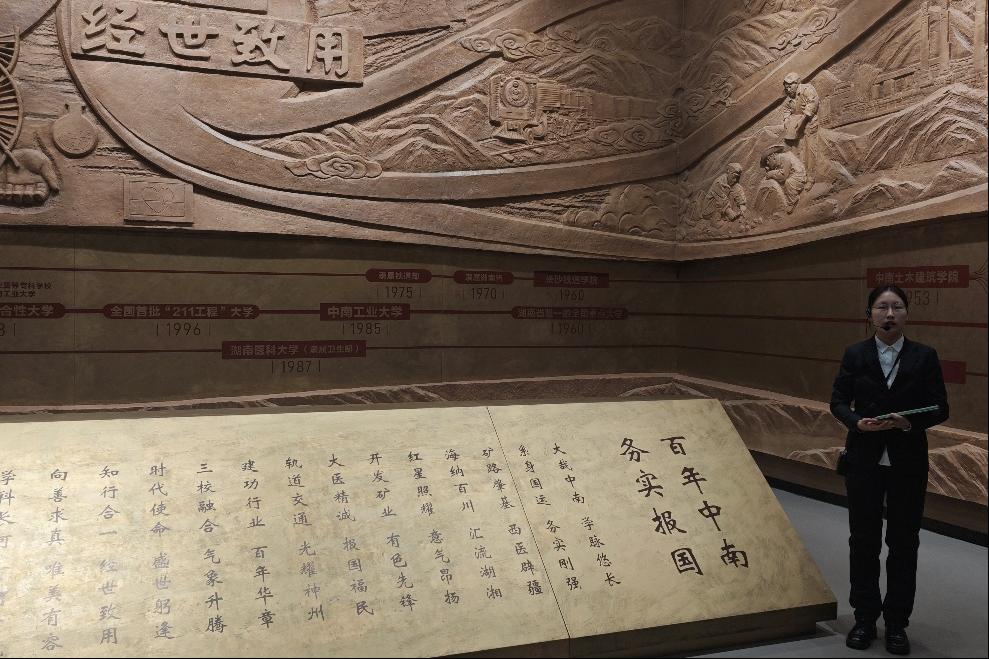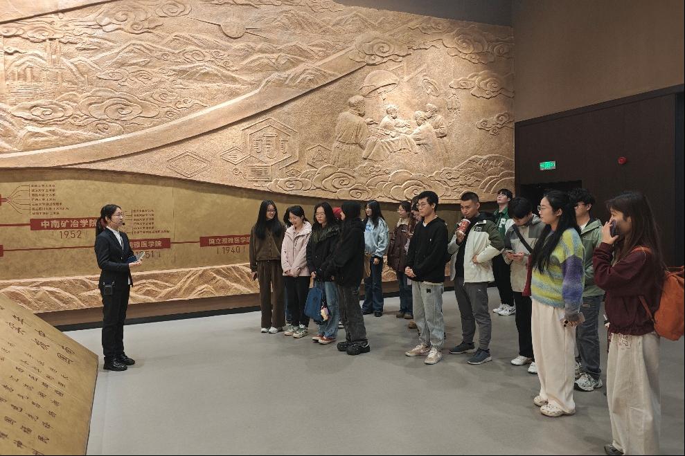 15:30,支部成员在校史馆门前集合完毕,有序步入馆内。在讲解员的引导下,支部成员依次参观了校史馆上下两篇共16个单元展区,循着有色金属、医学、轨道交通三大学科主脉的溯源之路,重温学校合并壮大的发展历程,沉浸式感受百年中南的峥嵘岁月与辉煌成就。