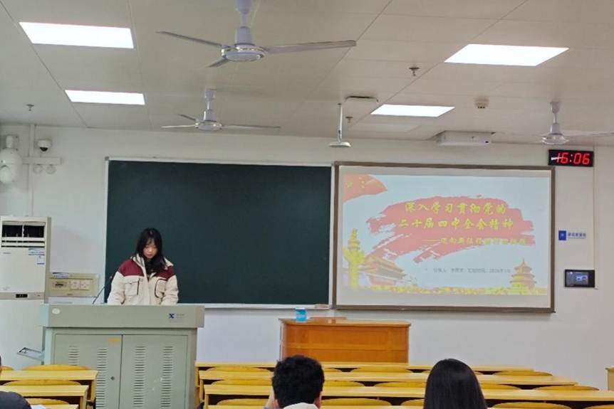 会议第一项,由李思宇、尹慧雯两位同志作微党课分享。李思宇同志以《深入学习贯彻党的二十届四中全会精神——迈向新征程的行动纲领》为题,从会议背景意义、“十四五”“十五五”发展方位、战略部署及学习贯彻路径展开解读,明晰 “发扬历史主动,办好自己的事”的精神内核;尹慧雯同志聚焦《以高质量发展新成效谱写中国式现代化新篇章》,深入阐释“十五五”时期高质量发展主题与现代化产业体系建设等核心任务。两位同志的分享脉络清晰、重点突出,帮助全体党员进一步准确把握全会精神的核心要义与实践要求。