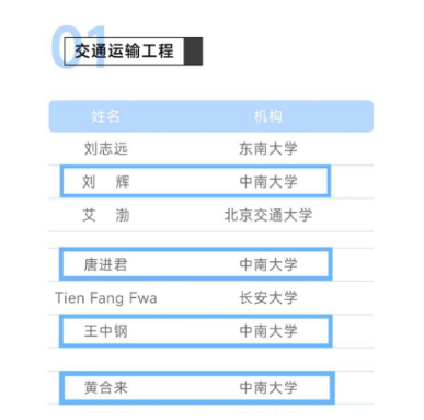 黄合来教授、刘辉教授、唐进君教授、王中钢教授入选交通运输工程学科领域的“中国高被引学者”榜单。