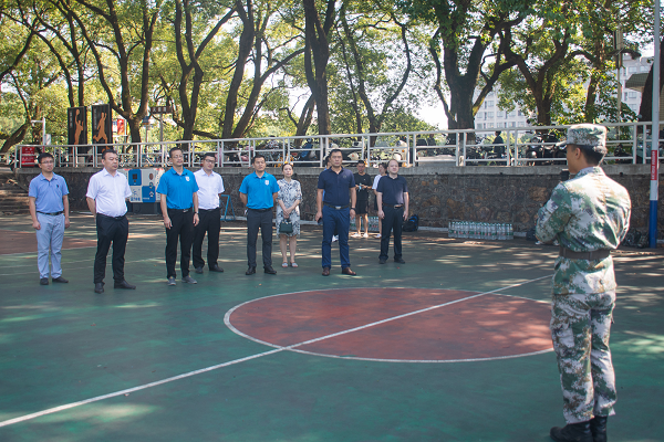 9月21日早上10点,三级片 党委书记贺志军、院长高广军等院领导以及全体辅导员老师来到南校区篮球场,亲切慰问2021级军训教官及参训新生。