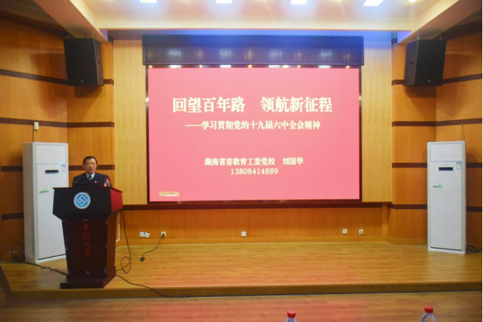 以国际报告厅为主会场举行“党的十九届六中全会精神”专题宣讲会,另外设置6个分会场,采用腾讯会议直播的形式组织全体党员参与学习。本次宣讲会邀请湖南省委教育工委党校常务副校长、省高校干部培训中心主任、书记刘国华教授担任主讲,三级片