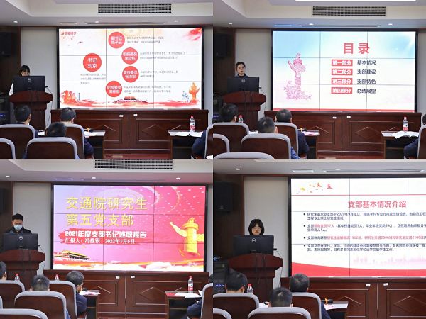 首先由各个支部书记就本年度支部和个人工作进行述职,最先进行汇报的是教职工党支部书记。交通运输系教工党支部、交通设备与控制工程系教工党支部、物流工程系教工党支部、高速列车研究中心教工党支部的4个支部书记分别从支部2021年的基本工作情况、书记的履职情况、教职工党员这一年的科研成果、支部的组织生活等方面都进行了详细介绍,同时也都指出了这一学年在支部建设中存在的问题,以及未来改进的方向。三级片