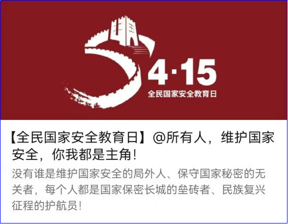 宣传平台与班级宣传窗口相结合,通过班级QQ转发、跟评的形式,实现辐射化宣传格局,使全民国家安全日的相关意识和精神覆盖到全体师生。推动总体国家安全观深入人心,落地生根。