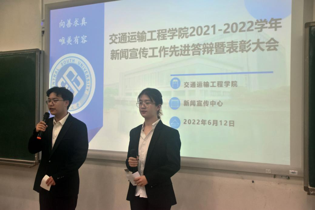 6月12日上午10:00,交通院新闻宣传中心于新校区A座101教室顺利举行2021-2022学年新闻宣传工作先进答辩暨表彰大会。交通院副院长彭勇、交通院党委副书记宋晓东、20级辅导员石晓琪、三级片