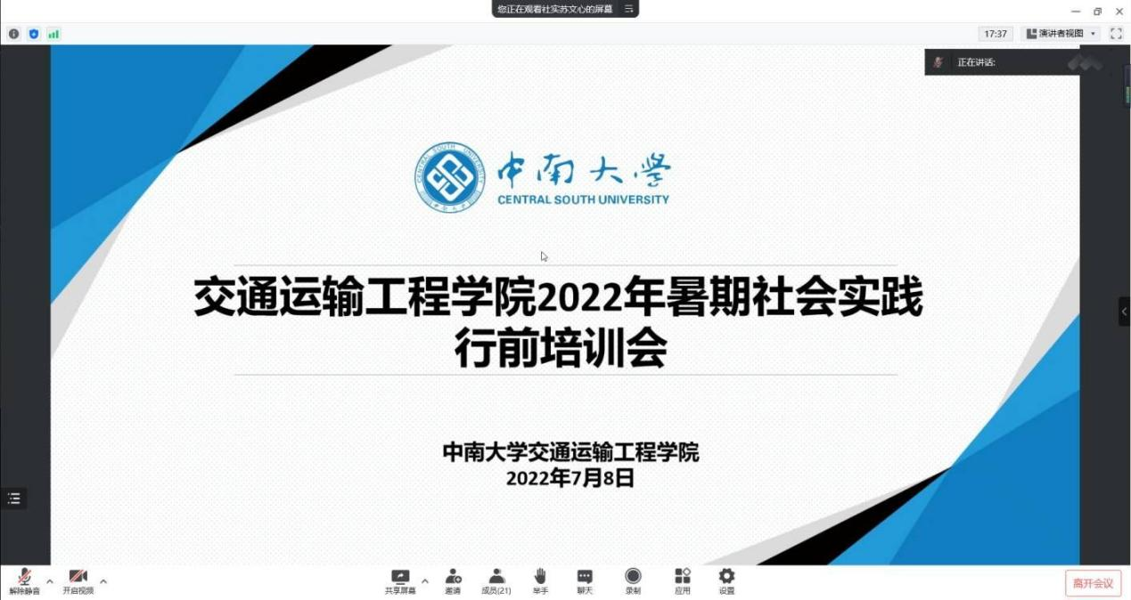 以线上形式顺利举办2022年暑期社会实践行前培训会。交通院团委副书记张健老师、郑繁简老师和交通院各暑期社会实践团队参加了本次会议。会议邀请了2021年三级片