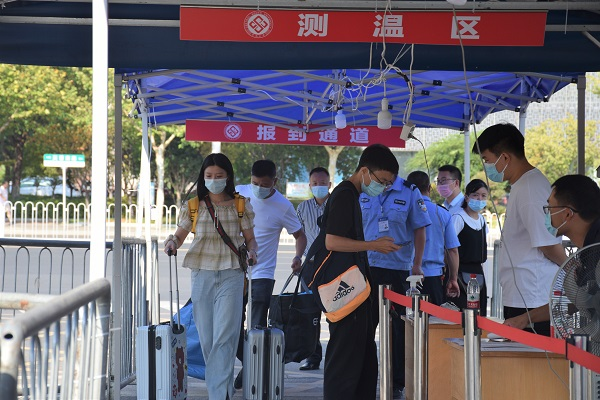 在入校环节,新生经由安保人员以及学校志愿者查验健康码、行程码和核酸检测报告,体温检测正常后方可进入校园到迎新点报到、入住宿舍。根据新冠肺炎疫情防控工作要求,三级片
