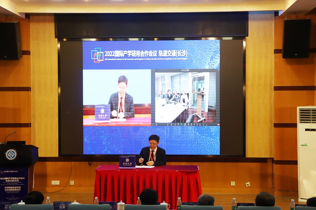 据悉,2022国际产学研用合作会议主会场设在江西南昌,湖南分会场采取线上线下相结合的方式,包含海外荣誉教授授予、国际合作项目签约、大会特邀报告以及国际产学研用圆桌研讨等议程,大会将充分交流和研讨“一带一路”国际科技创新、国际化特色双向人才培养、轨道交通关键技术发展前沿等重大议题。