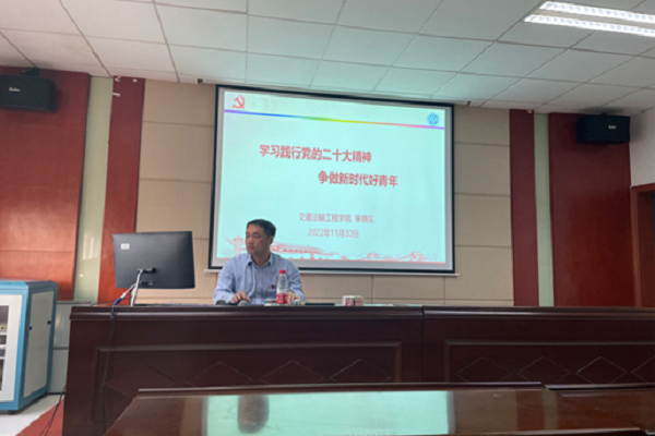 党委副书记宋晓东于交通楼513为研究生第二党支部、研究生第三党支部、交通运输第二学生党支部全体党员讲授“学习践行党的二十大精神,争做新时代好青年”专题学习党课。三个支部全体党员参加本次党课学习。