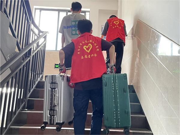 志愿者和工作人员各司其职、认真负责,维持搬迁秩序,确保搬运车辆及时到位,学生行李物品及时归寝。
