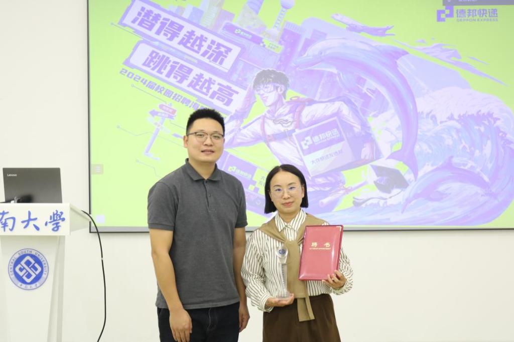 代表老师丁德孝与各年级学生参加了本次讲座。本次讲座的主要内容是物流行业趋势与德邦快递校招海豚计划分享,采取线上线下相结合的方式开展。