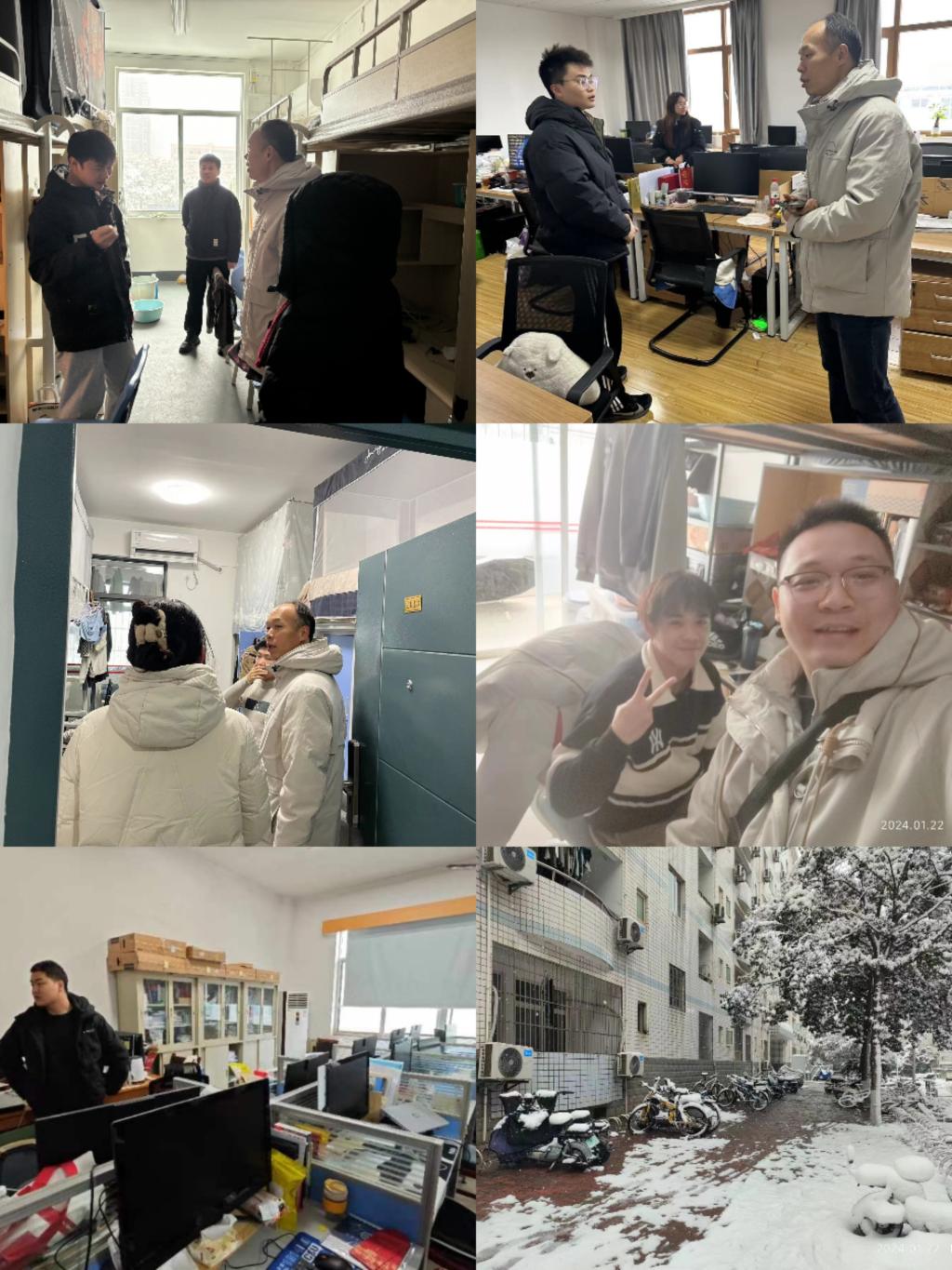 党委副书记李苑、各年级辅导员深入研究生实验室、学生寝室以及学生宿舍楼周边,切实开展安全风险隐患集中排查,做好雨雪冰冻等极端天气下的出行安全教育。