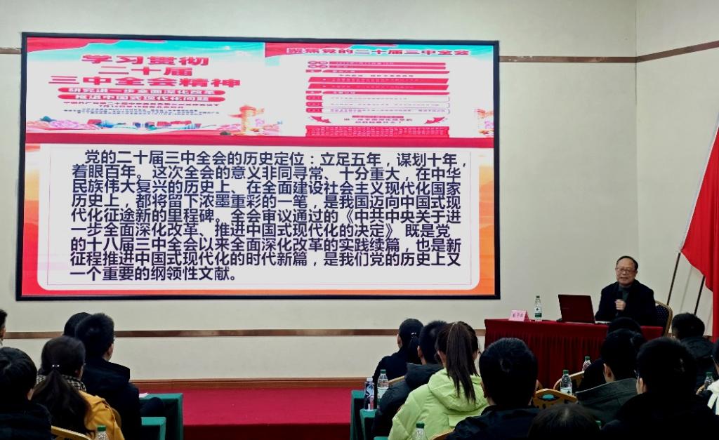 教授戴安林进行授课,戴教授以“坚定不移将改革进行到底——党的二十届三中全会精神解读”为题,深入解读了二十届三中全会精神。他鼓励学员们要充分了解全会精神,以顽强斗志和实际行动为国家的现代化建设贡献智慧和力量。