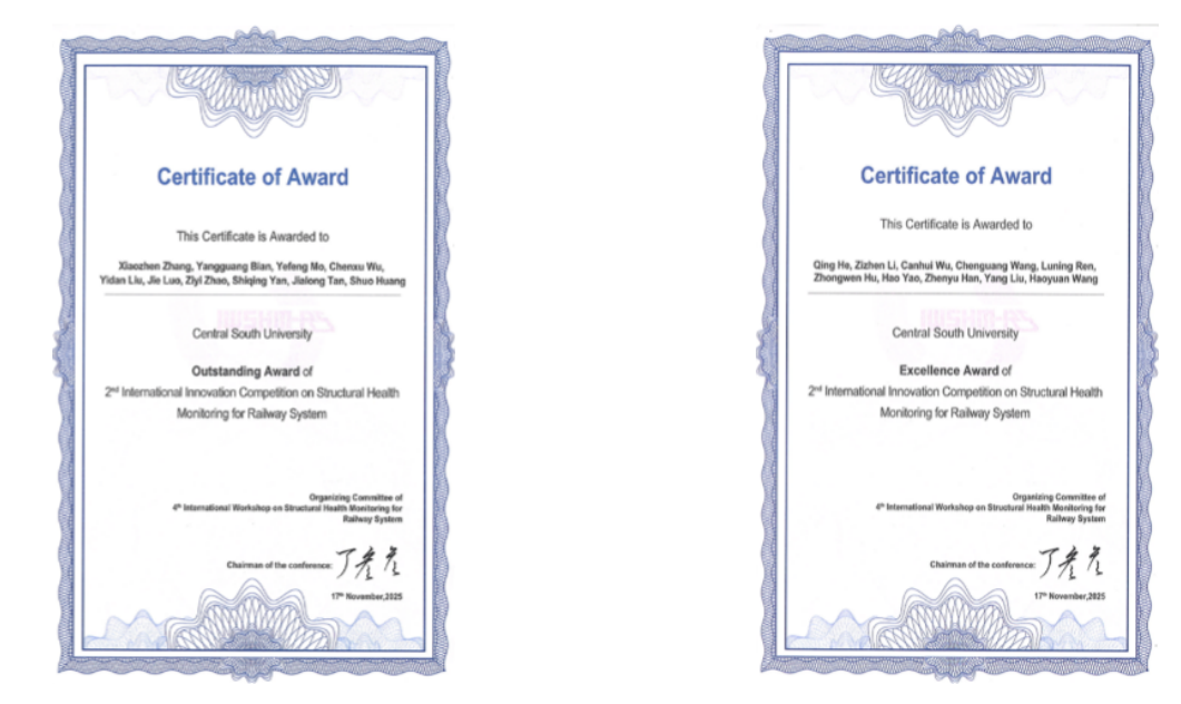 三级片 科研团队在第二届轨道交通结构健康监测国际创新大赛获杰出奖、卓越奖等多项佳绩