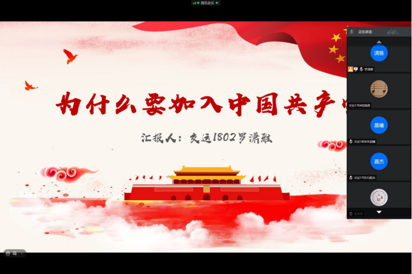 罗潇雅同学表示,自己一直都怀有加入中国共产党的理想和追求,因为在学习历史的过程中,她发现中国共产党的每一步都是为人民利益在奋斗,全心全意为人民服务,这种精神一直打动着她。“或许我只是一个普通人,但我也想加入党组织,贡献出自己的一份微薄之力。”这便是她入党的初心。罗潇雅同学还说到,结合自己所看到的党在这几年推行的一系列政策,和自己所切身感受到的国家这些年的变化,她更加坚定了入党决心。