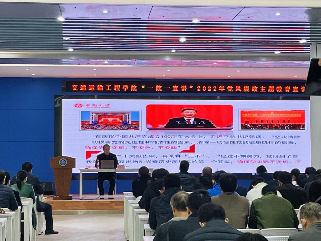 的四点要求展开,结合中央巡视反馈意见、学校纪委近年来处置的校园典型案例,深入浅出地对常见违法违纪案件进行了剖析,为与会成员上了一堂精彩生动、内容丰富、极具警示意义的廉政教育课。他要求全院教职工要讲政治、讲团结、讲担当、讲廉洁,以党的二十大精神为指引,以更高的站位、更严的标准鞭策自己,为学校内涵建设和高质量发展做出新的更大贡献。