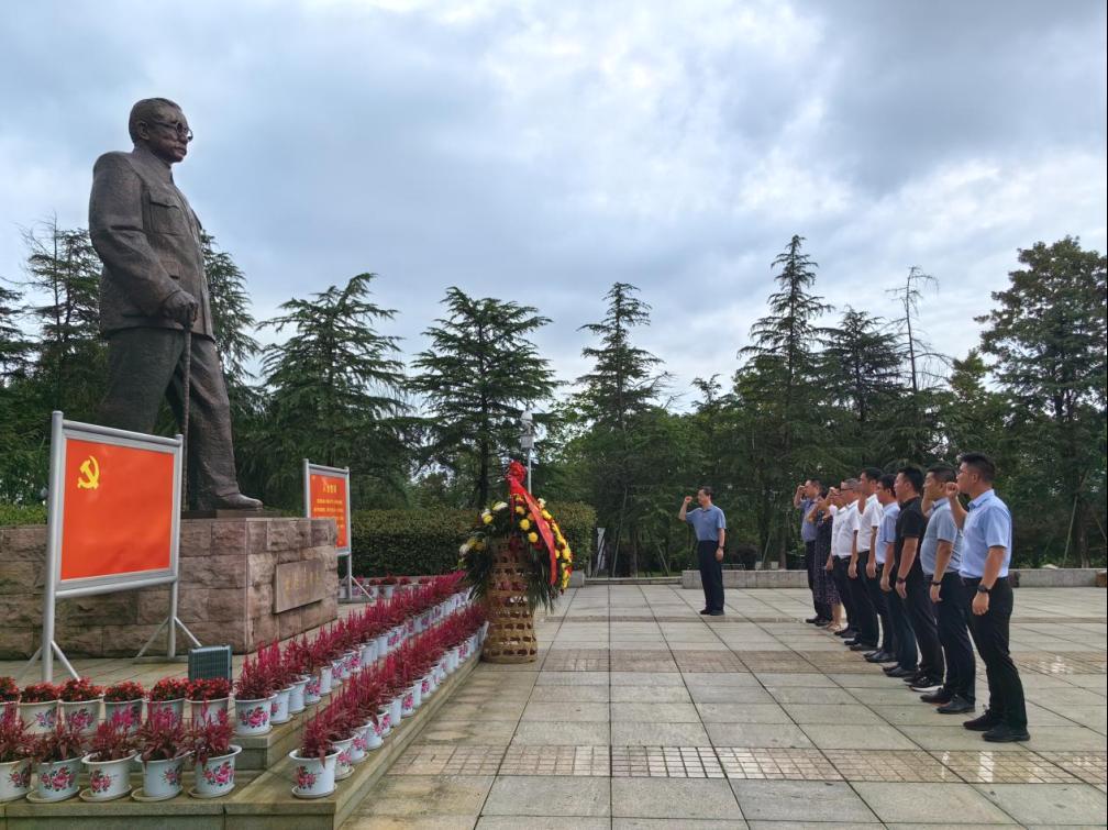 党委一行在林伯渠铜像前进行瞻仰,敬献花篮并庄重鞠躬。6月的林伯渠铜像广场翠柏环绕,庄严肃穆,贺志军书记带领全体同志深深鞠躬,向革命先贤致以崇高的敬礼,并庄严举起右手重温入党誓词,声声铿锵中是对共产党人初心使命的坚守与担当。
