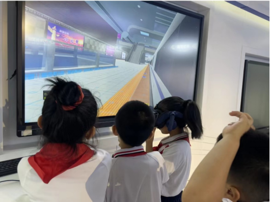 的发展概况,感受到轨道交通技术革新、中国轨道交通发展的速度,探寻当下与未来铁路发展的奥秘。为普及科学知识、提升科普引力,同学们参观科普体验活动,以VR虚拟场景的形式让小朋友们切身实际地体验地铁车站,走进轨道列车,学习轨道交通相关知识。同时交通科学专家团队的老师也为小朋友们进行了专业且有趣的科普讲解,为打造普惠创新、全面动员、全员参与的社会化大科普格局做出积极贡献。