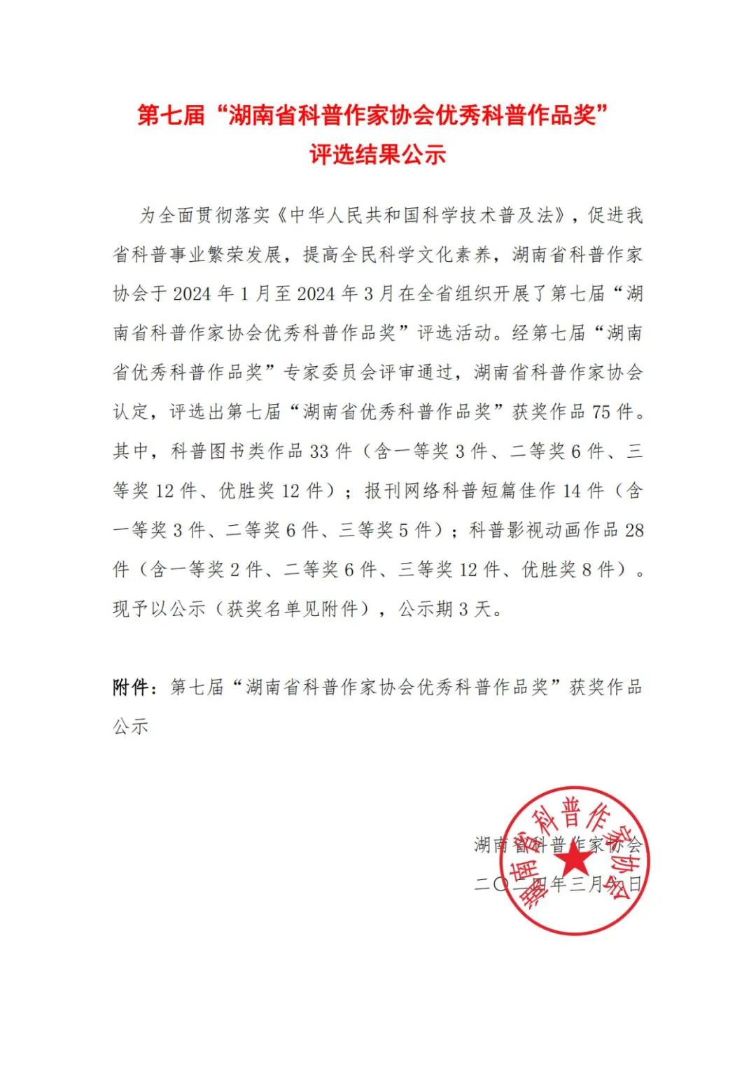 《漫画高速列车》获得2024年度湖南省科普作家协会科普图书优秀奖