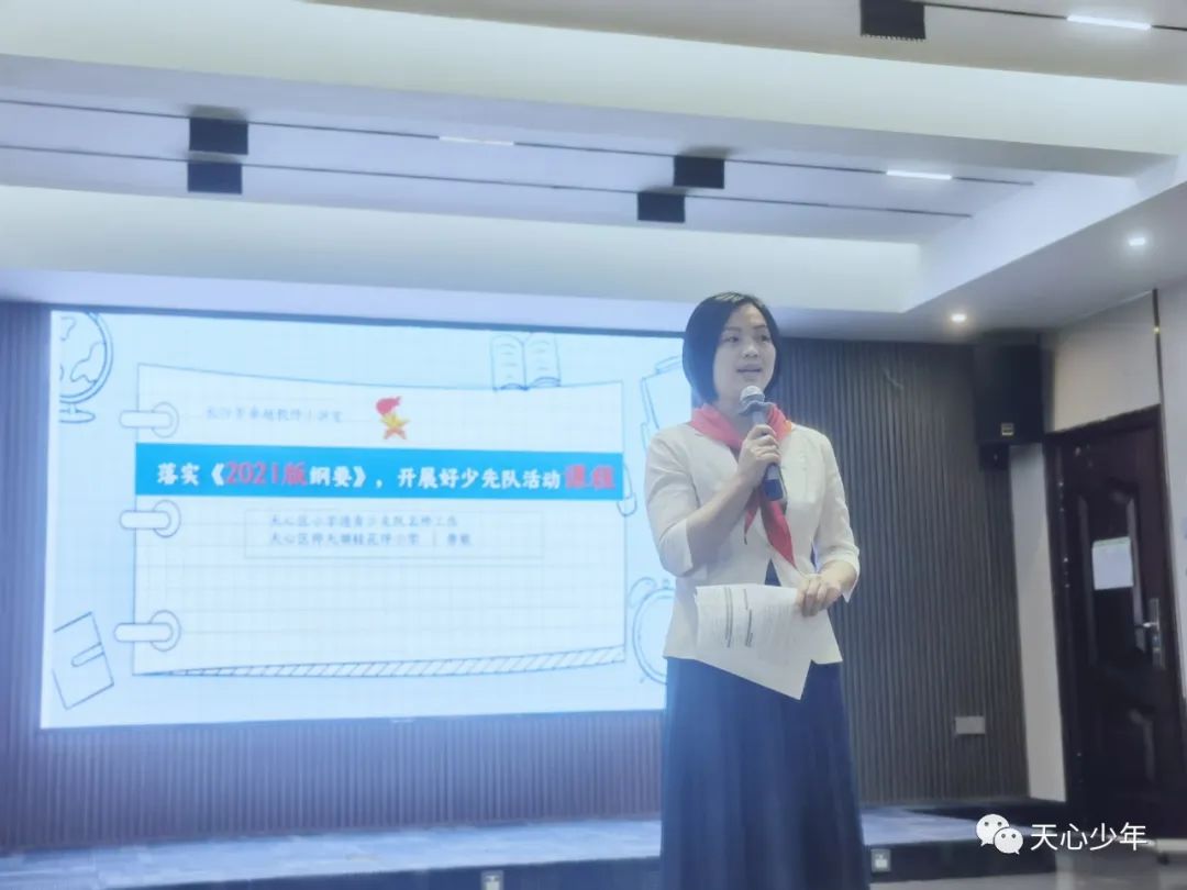 自《少先队活动课程纲要(2021年版)》颁布以来,天心区各学校都在努力探索如何做好学生的思想引领工作,上好队员们喜闻乐见的儿童化思政课,对此,天心区德育少先队首席名师唐敏,带来了解读《2021版少先队活动课纲要》专题讲座。她从《纲要》的修订思路、新变化、目标与内容三方面进行解读,鼓励广大少先队辅导员更好地把握新时代少先队工作的新形势,落实习近平主席对少年儿童提出的新要求。