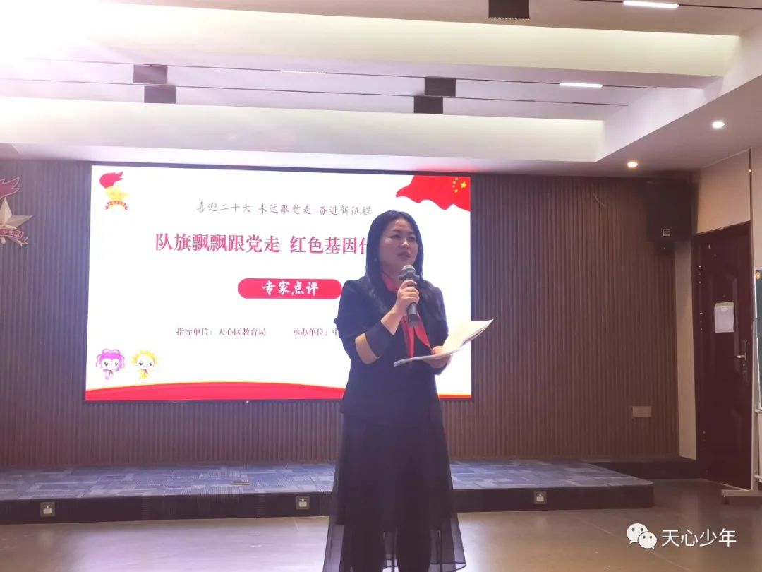 活动最后,长沙市吴海芸少先队名师工作室首席名师、天心区少先队总辅导员吴海芸进行了总结发言。天心区教育局党委、教育局十分重视思政教师队伍的培养,通过天心“红辅荟”这个研训平台,促进天心区少先队辅导员队伍专业素养的提升。对于天心红辅荟线下+线上相结合的培训形式她也给予了充分地肯定,她还对接下来的活动提出了畅想和期望,希望少先队辅导员研读少先队专业书籍和相关文件,积极参与少先队活动研讨,努力成长为一名优秀的思政工作者,为党育人,为国育才。