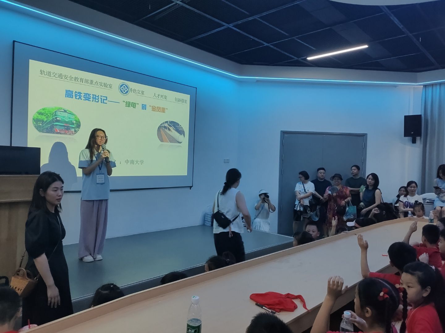 科普展示厅内,讲解员用生动活泼的语言和互动体验的方式,向孩子们介绍了高铁的奥秘和科学原理。